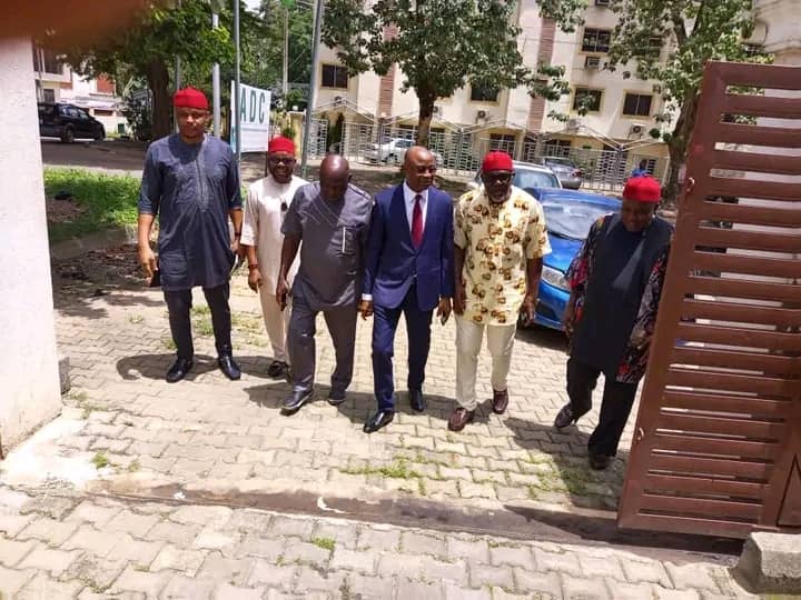 The Governorship Candidate of Africa Democratic Congress (ADC), Mr. John Chuma Nwosu and running mate, Chief Dr. Sir. Ndubisi Nwobu arrives party headquarters at Abuja.