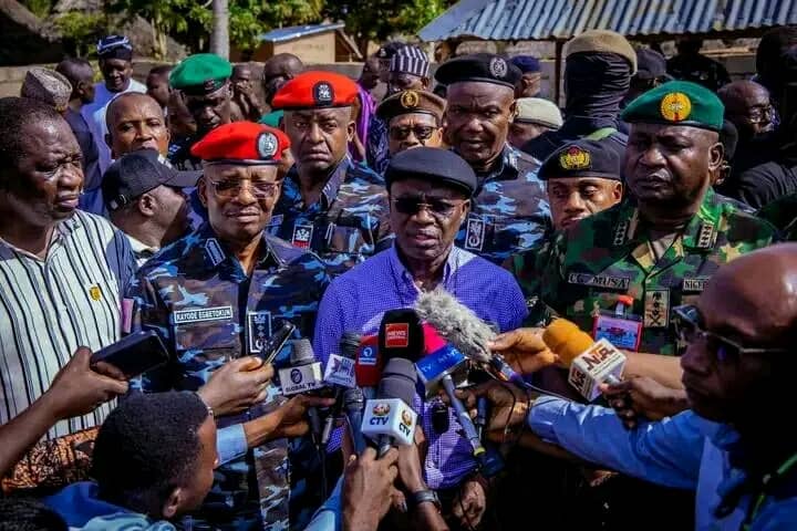 Governor Hyacinth Alia, accompanied by the Chief of Defence Staff, Inspector General of Police, and other top security officials, visited Yelwata, the site of the recent Fulani bandit attacks. This decisive move demonstrates the government’s commitment to addressing the crisis and restoring peace in Benue State.