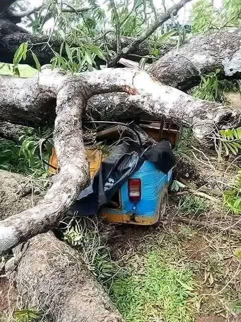 The tricycle was reportedly conveying the couple home when the decades-old mango tree suddenly gave way and crashed onto the moving vehicle.