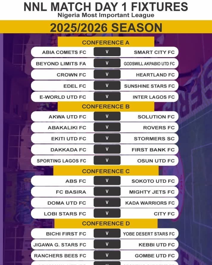 The Nigeria National League (NNL), dubbed “Nigeria’s Most Important League”, kicks off the 2025/26 season with exciting Matchday 1 fixtures across the four conferences.