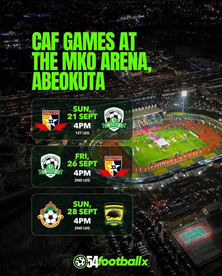 Remo Stars and Kwara United will play their CAF Club games at the M.K.O Sports Arena in Abeokuta.