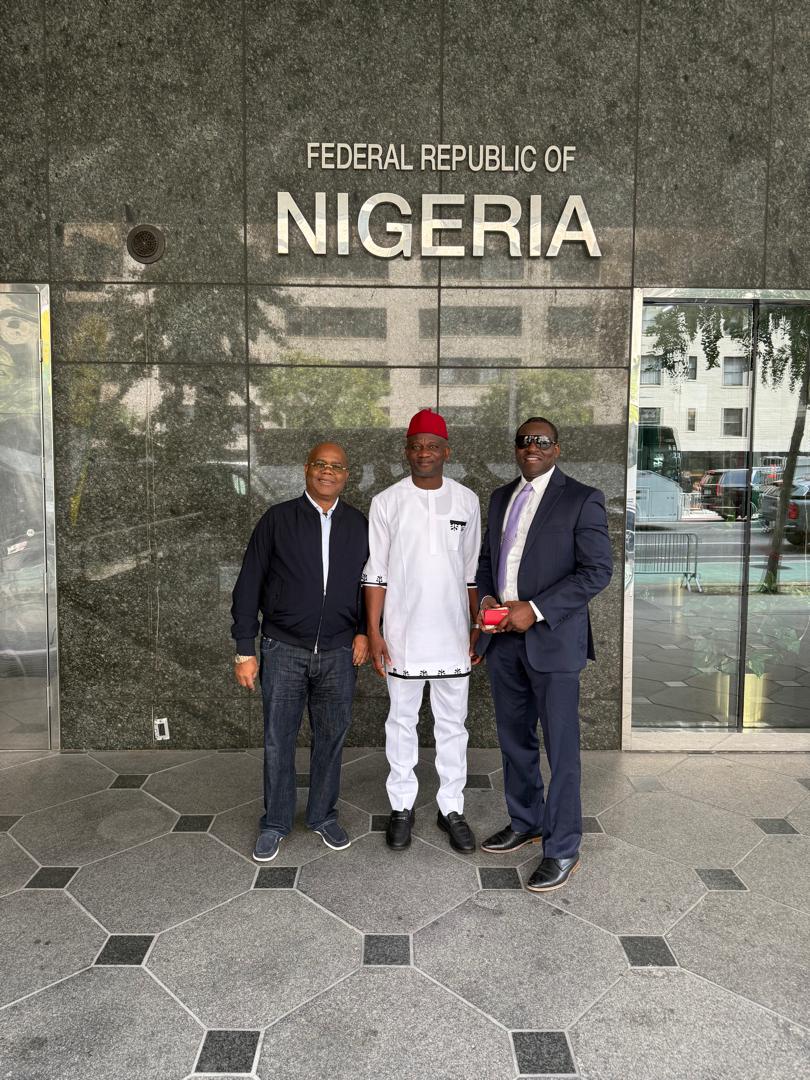 Hon Peter Udeoglanya Aniekwe with Other Members of National Assembly Members,Hon Billy Osawaru and Hon Anayo Onwuegbu were received by Ambassador Abubakar Jidda, the Consulate General of Nigeria Mission in New York.