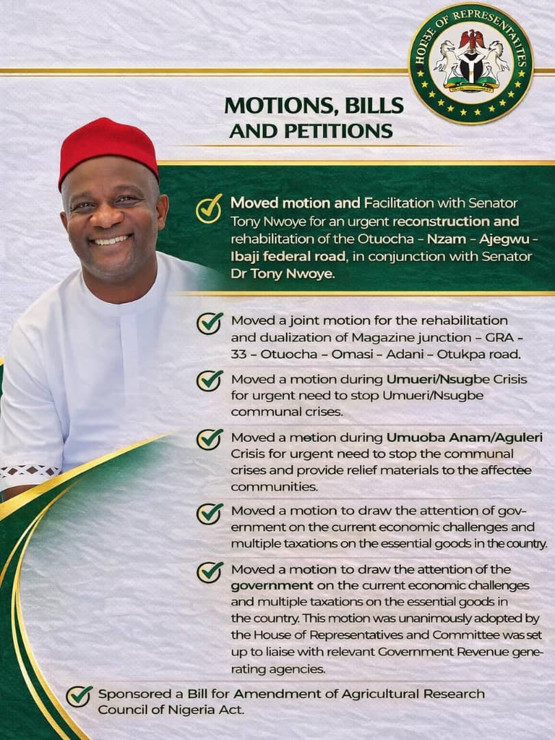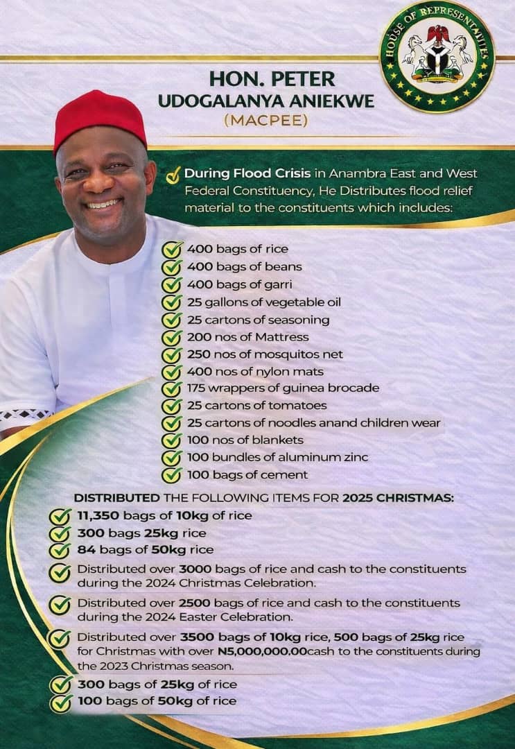 The public-spirited Honourable Member representing the hardworking people of Anambra East and West Federal Constituency had, released a highly valuable document containing a comprehensive account of his legislative engagements and fiscal interventions across the 2024 and 2025 budget cycles.