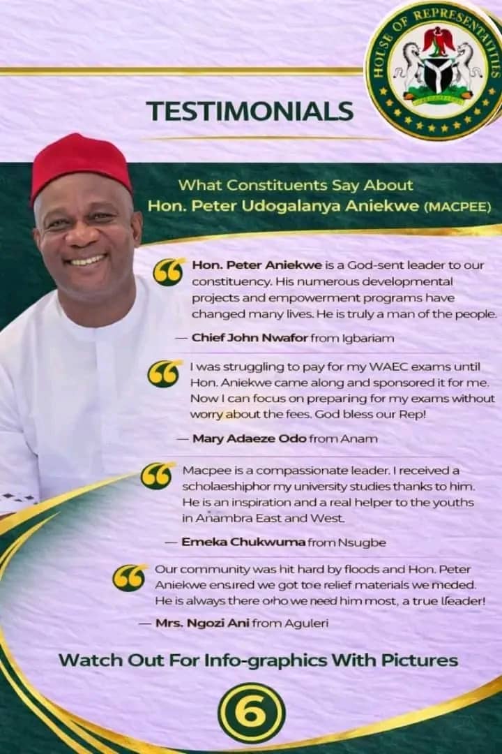 Finally, Hon. Peter Udogalanya Aniekwe affirms that effective representation is best measured not merely by rhetoric, but by documented impact and tangible progress.